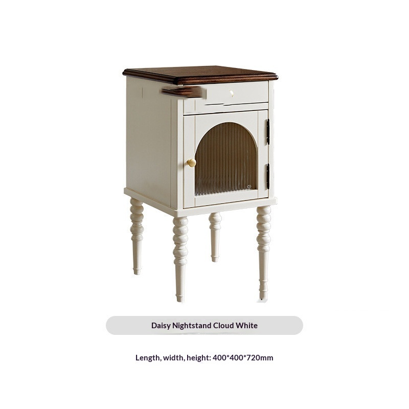 Product information: Color: Nightstand (Smoky Black), Nightstand (Walnut), Nightstand (Cloud White) Processing Method: Customized to Sample Function: Mobile Material: Solid Wood Applicable Place: Bedroom Applicable Object: Children, Adults, Elderly Style: French