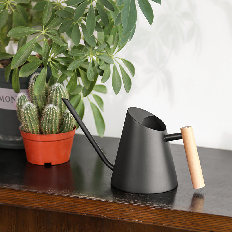 Product information: Product Name tapered wooden handle watering can Applicable scenario: family balcony garden Material: 201 stainless steel Beech handle Specifications: 800ml-matte black, 800ml-matte white, 900ml-sanding